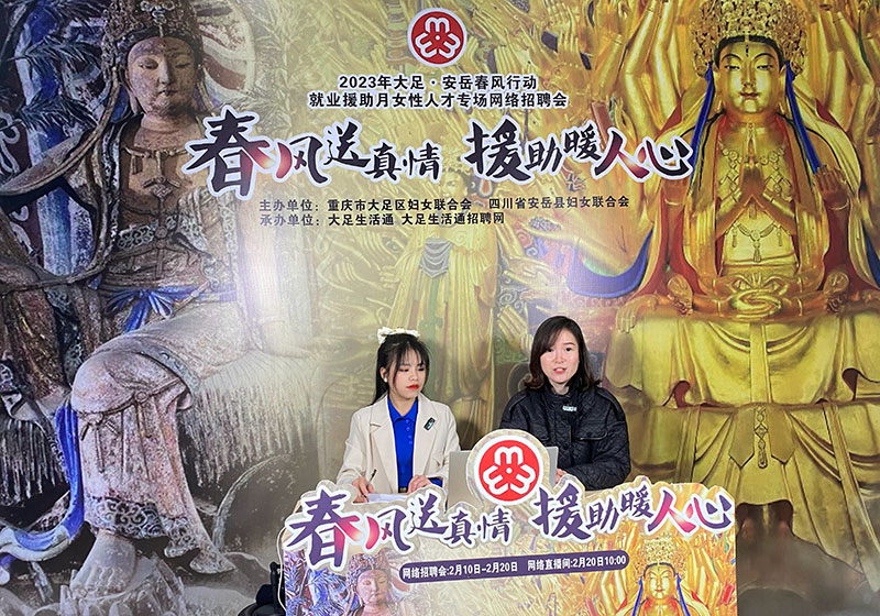 妇女节前夕,四川省资阳市安岳县妇女联合会携手重庆市大足区妇女联合会,共同举办2023年大足·安岳女性人才专场网络招聘会,近200家企业向两地女性发出“入职邀请”,提供近4000个就业岗位。