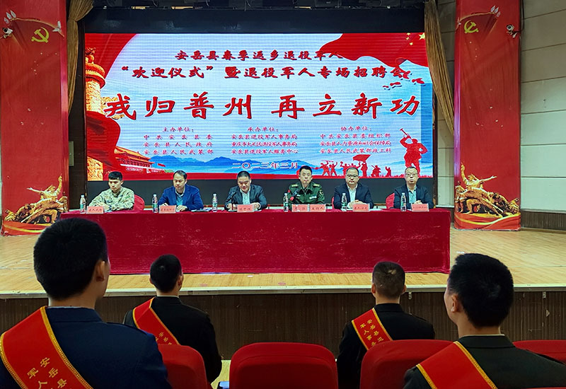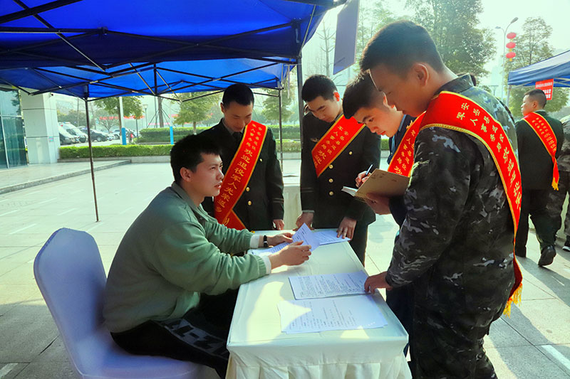 欢迎仪式结束后,举办了退役军人专场招聘会。招聘会现场秩序井然、气氛热烈,来自安岳县和重庆市大足区共计40余家用人单位,向退役军人推出了400余个优质岗位。退役军人和用人单位面对面咨询沟通,不少退役军人和用人单位当场达成就业意向。现场还为退役军人发放了职业技能培训指导手册、报到流程卡和返乡联络卡。