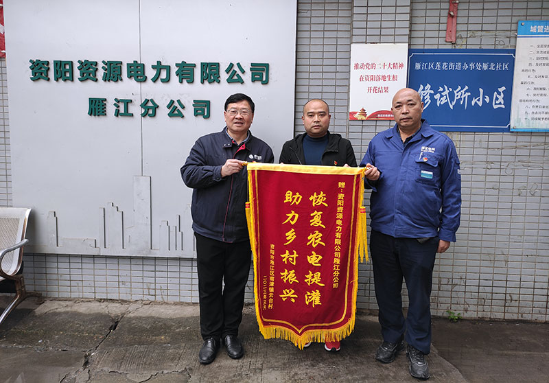 为农民解决了实际问题之后,冯星奎感到非常欣慰,他向资源电力雁江分公司送上写着“恢复农电提灌 助力乡村振兴”的锦旗,并希望在今后加强“村网共建”合作,共同为农村群众提供便民服务。