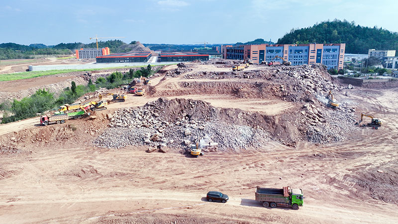 “整个项目土石方总工程量有120多万方,目前完成了45万方土石方挖运工作。为了全力推进项目建设,我们中安集团是倒排工期,挂图作战,实行轮班作业。项目上平均每天都有60余辆工程车同时作业,确保今年5月底项目平场工作全面完成。”廖建华如是说道。