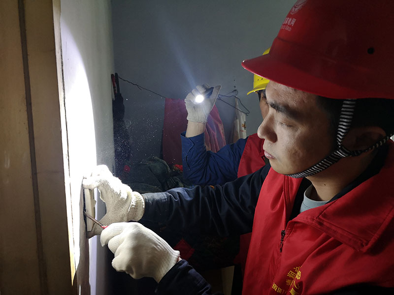 原来,老人一直与未婚的养子相依为命,每月靠养子1000多元的工资与自己400多元的低保过活,生活较为困难。最近家里线路坏了,一到晚上行动很不方便。经过现场检查发现,老人家里的线路老化,卧室的预埋线已经断裂,开关损坏。为了尽快给老人复电,志愿者们当即决定自费为老人购买线、开关、节能灯等用电设备并安装。经过志愿者们两个多小时的努力,老人家里又重新恢复了光明。