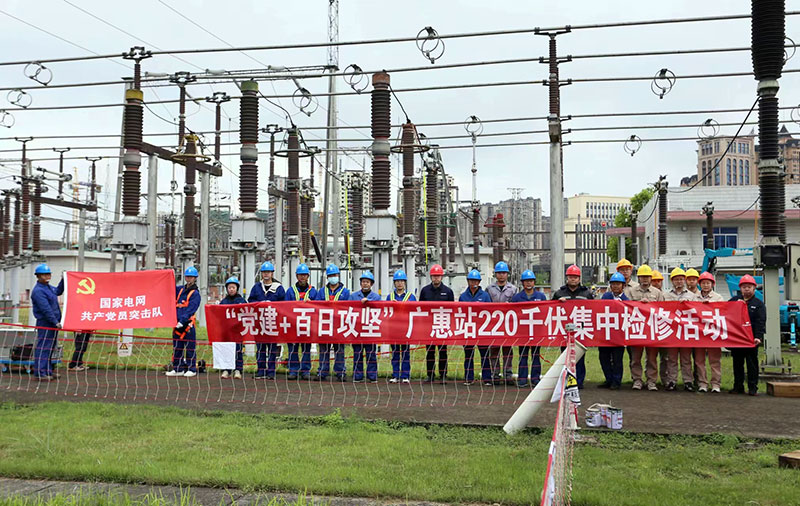 220千伏广惠站总容量27万千瓦,去年迎峰度夏期间最高负荷25.6万千瓦,占安岳全县供电74%。为确保今年夏季变电站设备安全稳定运行,资阳供电公司高度重视此次检修攻坚项目,由专业管理部门牵头精心组织,各单位协同配合,成立广惠站年度检修临时党支部,负责总体协调及检修全过程的安全、进度、质量管理,确保此次检修工作有序开展。