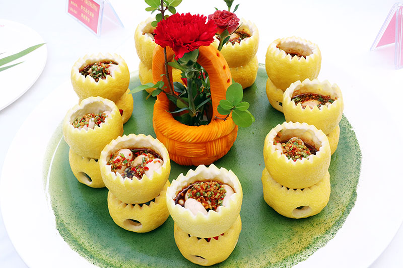 活动现场,安岳县25家餐饮企业的大厨们汇聚于此,纷纷拿出看家绝活,精湛的刀工、精致的雕花、创意的摆盘,特别将柠檬元素添置于食材之中,烹制成一道道极具安岳地方特色的菜肴。