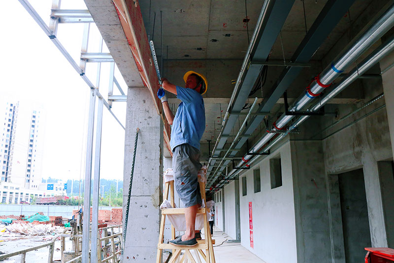四川新闻网消息 6月15日,笔者来到正在建设中的安岳县第七幼儿园施工现场看到,大型机械设备已经离场,施工人员正在建筑内部进行墙体装修、消防管道安装和水电装配,项目正在如火如荼地推进中。