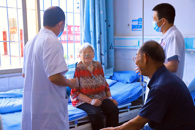 “在我院‘多学科诊疗团’的高质量会诊和得当治疗下,您老人家的症状出现了明显好转。同时,我们也为您制定了个体化治疗方案,并根据病情发展及时调整。请放心,我们一定对你负责到底。”县第三人民医院呼吸内科副主任医师李荃一边笑着安慰杨奶奶,一边为她检查身体。