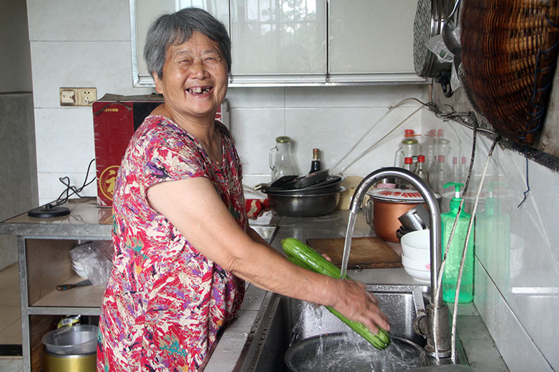 “以前没有安装自来水很不方便,我们老两口用水只能依靠门口的水井。但是,一遇上天气干旱,水就不够用了,只能去2公里外的水井担水。现在有了自来水后,我们随用随接很方便,水也更干净了。”提到家里接通的自来水管,77岁的陈洪英奶奶笑得合不拢嘴。