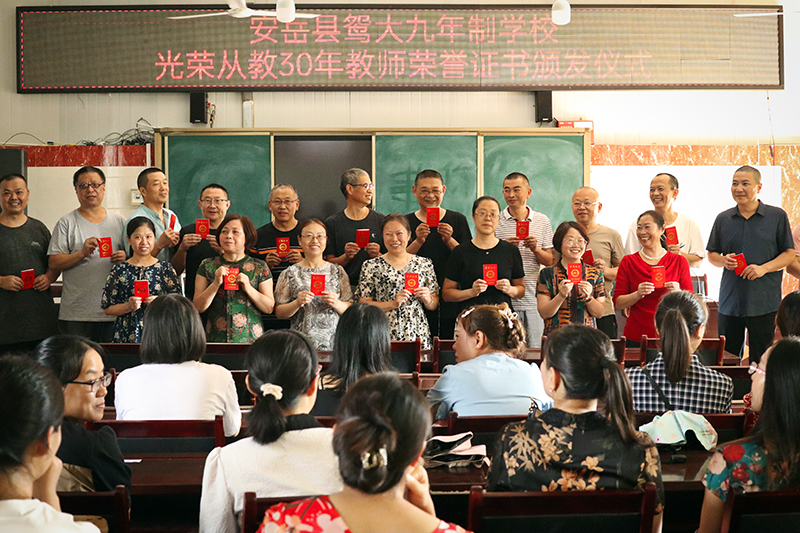 “因涉及面广,我们要和多个部门一起协调解决问题。前几个月的碰头会、协调会开了10多次,最终顺利在9月初落地实施,预计每年将投入200余万元。”安岳县教育和体育局党组成员、副局长谭兴军表示,目前已为全县3086名从教满30年教师办理了荣誉证书,其中乡村教师占比73.95%。