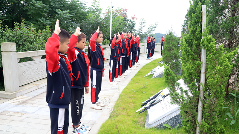 默哀毕,少先队员面向烈士纪念碑献唱队歌并致队礼。