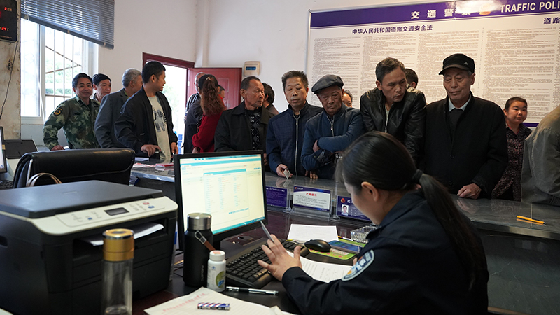 “我今天是来办理摩托车报废的,他们服务很周到,从县城到镇里来办理业务,给我们带来了极大方便,大家都很满意。”办事群众潘先生笑着说。