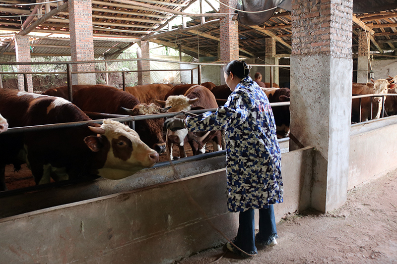 在该镇西泉村龚发明肉牛养殖场,只见一头头肉牛膘肥体壮。养殖场负责人蒲奎林正在为圈舍消毒防疫,提起肉牛养殖经历,她显得格外激动。“我是重庆万州人,土家族,之前我和丈夫在江苏打工,由于孩子读书需要钱,打工不是理想的选择,于是便回来从事肉牛养殖工作。”蒲奎林向笔者介绍:“元坝镇政府给与了我们大量的支持,经常来送消毒水搞防疫,真的感谢他们。”