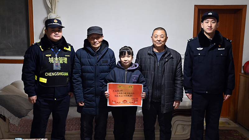 目前,事件有了最新后续!为了表扬这位拾金不昧的小朋友,1月4日晚,失主、公安民警、城管队员等“大朋友”带着感谢信、奖状、文具来到小朋友家中,对小朋友的行为表示赞扬和感谢。