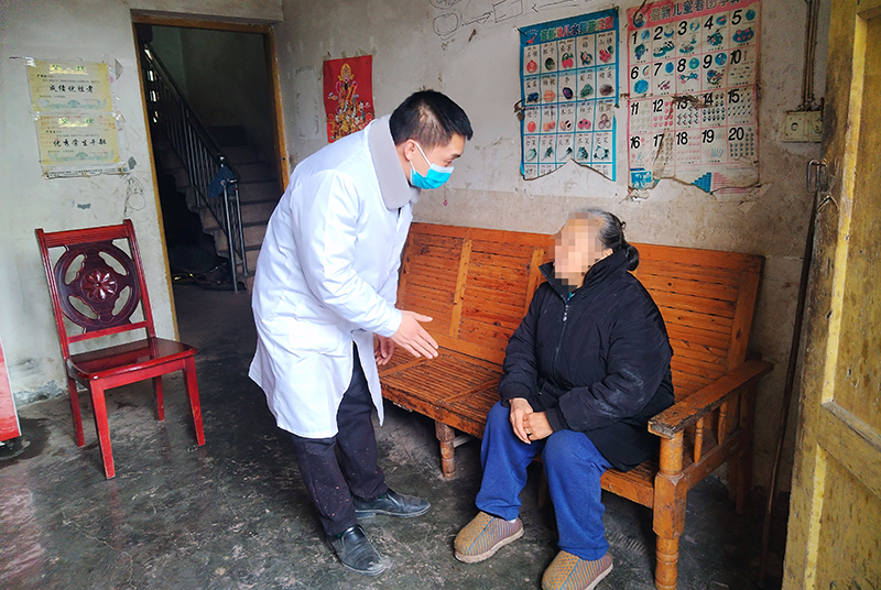 1月9日下午,笔者跟随着医务人员的脚步,来到了五柏社区5组居民李作万大爷家中,医务人员熟练地操作血压计、血糖仪等医疗设备进行检查,指导合理用药,于是便有了开头暖心的那一幕。