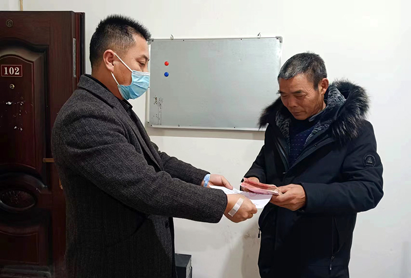 | 王川云(左一)将奖励金作为特殊党费上交 |