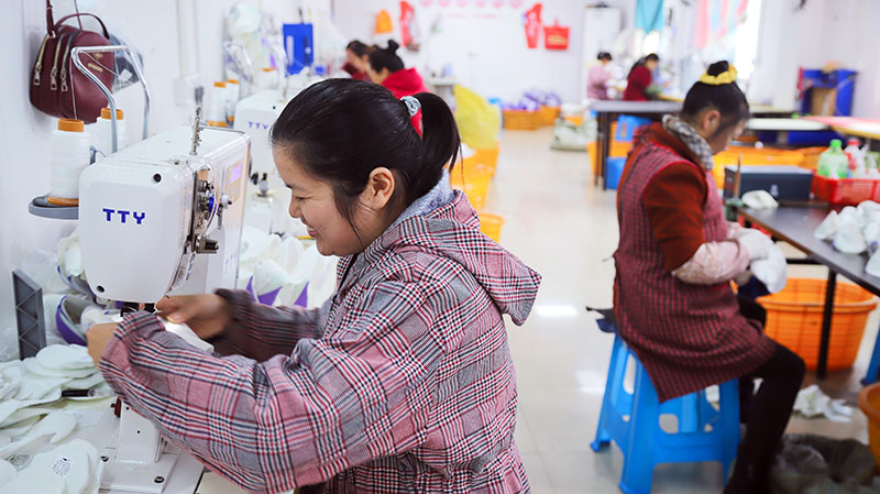 “我从原来对鞋面加工一窍不通,到现在独自完成帮脚边、结鞋绳、打后衬等工作,月平均工资4000元左右。”如今的生活让她觉得安稳又踏实,“出了家门就到厂门,幼儿园也在附近,每天接送孩子上下学都很方便,还能照顾家里的老人。”