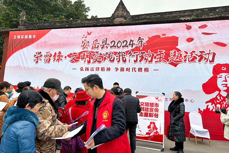 在充满大爱的安岳,学雷锋活动正持续深入推进,从青年志愿者到普通市民,从社区活动到公益项目,无数人用实际行动诠释着雷锋精神的时代内涵,志愿服务事业也如雨后春笋般迅速发展壮大。截至目前,全县共有注册志愿者162673名、志愿团队573支热情投身志愿服务事业,共同擦亮“文明安岳”服务品牌。