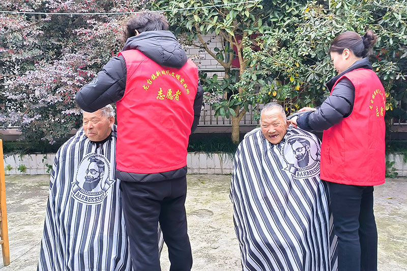 而在龙台镇敬老院,另一场温馨的志愿服务活动也在如火如荼地进行。志愿者谭德杰手持理发工具,细心地为每一位老人修剪发型。看着镜中焕然一新的自己,老人们脸上露出了开心的笑容。谭德杰笑着说:“看到老人家开心,我们也跟着开心。能够为老人们带来一份关爱和温暖,大家都很自豪。”