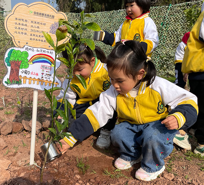 连日来,安岳各学校多形式组织开展了义务植树活动,号召学生以实际行动爱绿护绿。“在小小的花园里面,挖呀挖呀挖,种小小的种子,开小小的花。”小朋友们挥锹培土、扶苗植树、唱得起劲……3月11日,安岳县第五幼儿园组织开展“‘植’于心·‘树’未来”植树节主题系列活动,小朋友们种下了属于自己的小树苗。