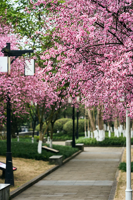 | 安岳县紫竹公园簇簇桃红惹人醉(李秋菘 摄) |