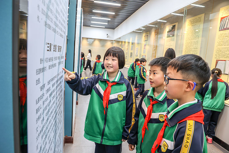 | 小学生参观秦九韶纪念馆(吴坤忠 摄) |