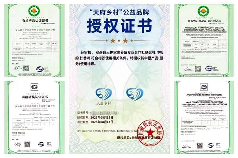 记者走进安岳县天护家禽养殖专业合作社联合社,映入眼帘的是整齐划一的鸡舍和正在忙碌的工人。2023年,安岳成功申报12个“天府乡村”公益品牌,其中该联合社的柠香鸡、酵花鸡、战山鸡、雪山草鸡获得“天府乡村”公益品牌标识使用许可,系列产品备受市场青睐。