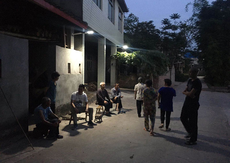6月3日晚,夜色渐浓,但乐至县良安镇宣家沟村依然喧嚣热闹,400余盏太阳能灯的照射让宣家沟村一反既往,亮如白昼,小孩在院坝里嬉笑玩闹、大人散步拉着家常,往日黑漆漆的村庄焕发出生机和活力,呈现出一派祥和的景象。