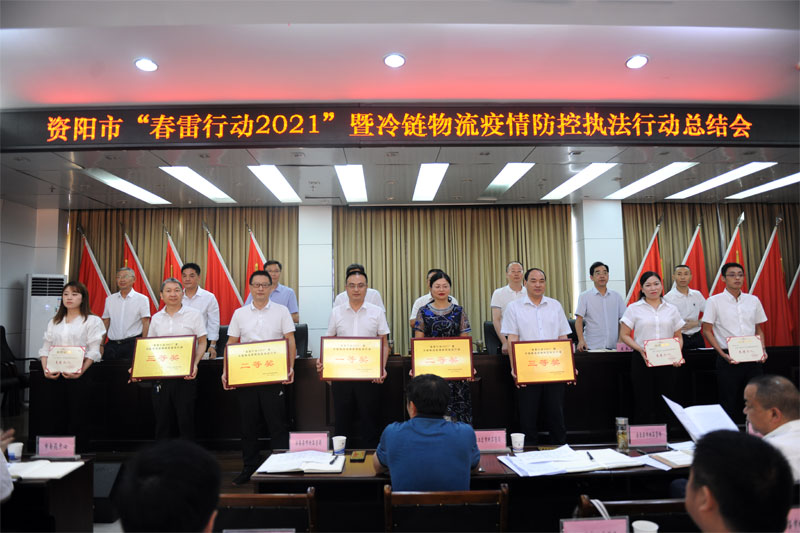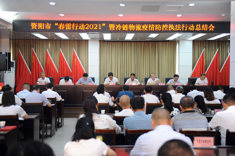 四川新闻网消息(黄智微 记者 杨颜铭)7月7日,资阳市“春雷行动2021”暨冷链物流疫情防控执法行动总结会议在资阳市市场监管局召开。会议全面总结回顾执法行动工作情况,交流经验做法,并通报表扬了“春雷行动2021”成绩突出单位和先进个人,以及全市市场监管系统扫黑除恶专项斗争表现突出集体和个人。