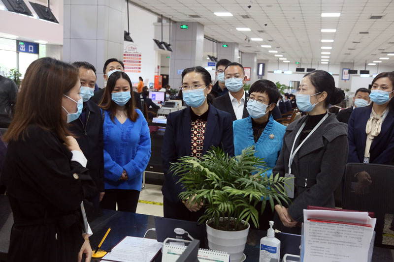 当天下午,调研组来到资阳市雁江区政务服务中心,先后前往市场监管、税务等窗口及企业开办专区,与工作人员亲切交谈,详细询问行政审批工作人员配备、审批系统使用、涉企办事流程、便民利企服务等,了解行政审批过程中存在的问题,现场征求工作人员对省市场监管局的意见建议。调研组要求,审批人员要强化“店小二”服务意识,加强业务知识学习,对业务工作做到咨询服务“一口清”、资料发放“一手清”、受理审查“一次清”,争当本领强、业务精的审批小能手,为企业和群众办好事、服好务。