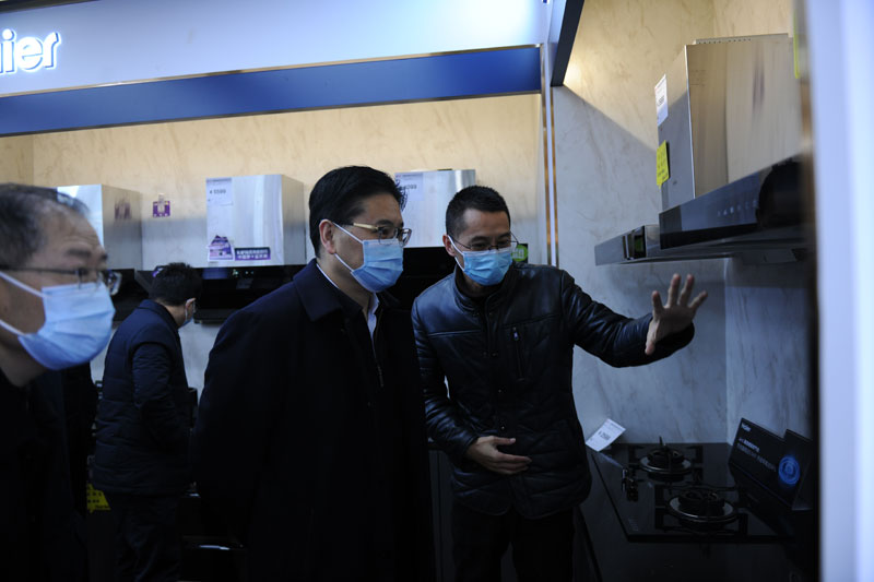 在资阳市龙汇贸易有限公司,杜德清重点查看燃气灶具质量安全和流通领域食品安全,仔细查看群众佩戴口罩、扫码测温入场情况,与超市负责人交流,了解超市运营情况、商品供销渠道、临期食品处置情况等,特别关注临江寺豆瓣酱上架销售情况。他强调,食品安全重于泰山。超市作为市民生活物资重要供应场所,要在严格做好疫情防控工作的前提下,确保货源充足、质量安全、价格稳定,保障广大市民群众生活所需。