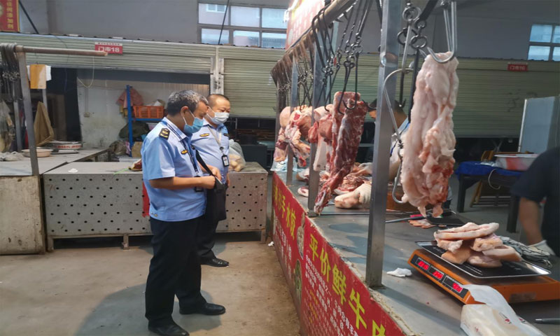 | 执法处置组巡查农贸市场猪肉价格,严防哄抬物价 |