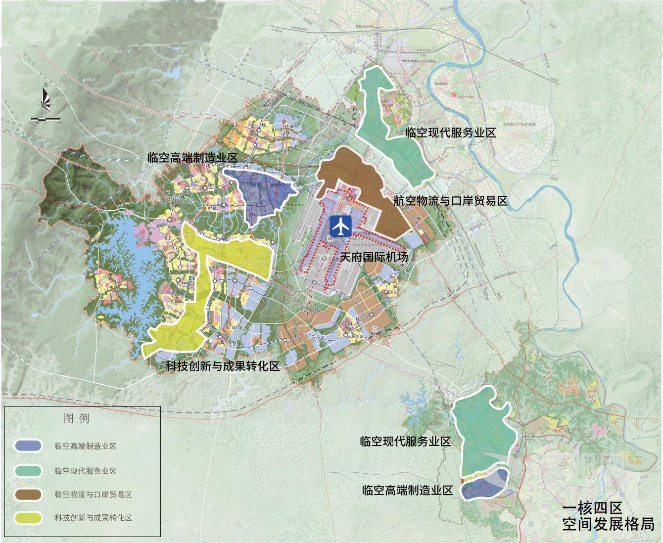 “四区”。 即航空物流与口岸贸易区、临空高端制造业区、临空现代服务业区、科技创新与成果转化区。
