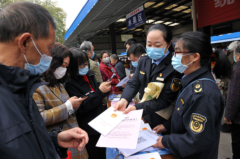 | 市场监管工作人员走进市场,开展普法宣传 |
