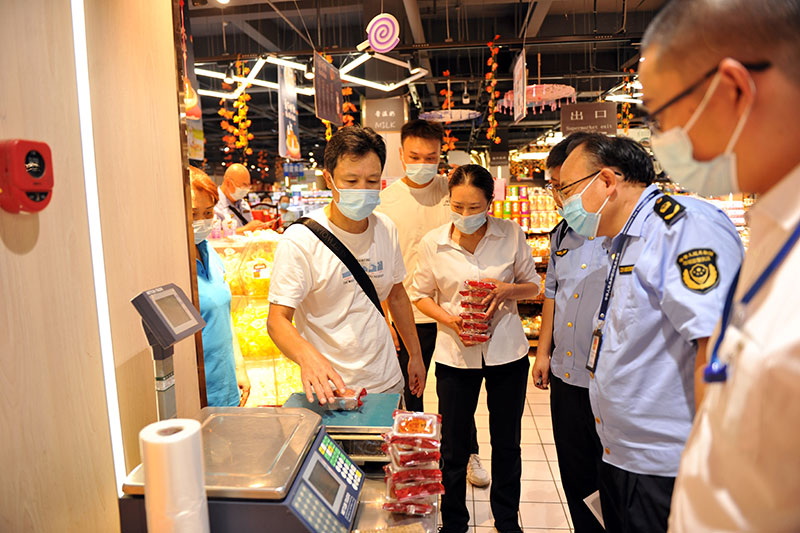 | 市场监管执法人员检查超市月饼是否符合新国标 |