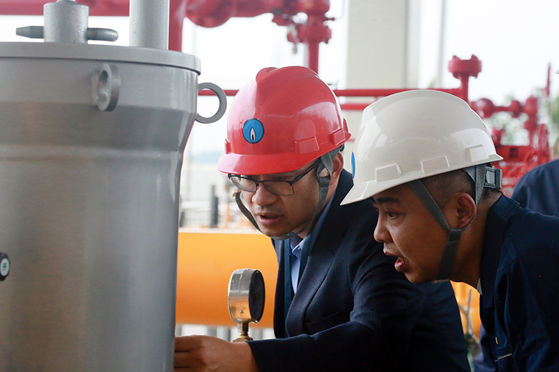 在乐至港华燃气有限公司,容弟斌仔细查看燃气相关特种设备运行管理情况。他要求,安全工作无小事,企业要强化特种设备安全隐患排查整治,确保群众用气安全;要强化应急能力培训,确保特种设备安全风险可防可控。
