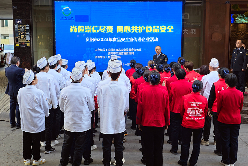 四川新闻网消息 为进一步做实食品安全宣传活动,强化餐饮服务单位主体责任意识,规范餐饮服务行业经营行为,11月16日,资阳市市场监管局结合食品安全宣传周“尚俭崇信尽责 同心共护食品安全”主题,到金迪大酒店开展食品安全宣传进企业活动。