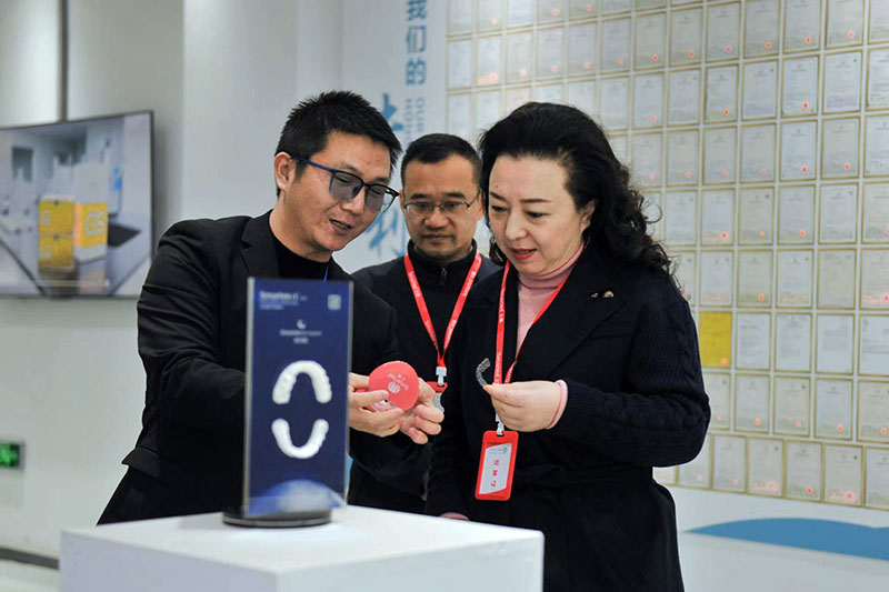 张建红一行先后来到四川正美齿科科技有限公司、盈纬达(四川)医疗器械有限公司、四川鸿政博恩口腔科技有限公司等7家企业,实地查看企业生产车间、产品展示区,详细了解企业产品研发注册、标准化建设、专利申请、产能产值、产品出口及节后复工等情况,听取企业对未来的规划及当下现实需求,并提出协调解决意见。