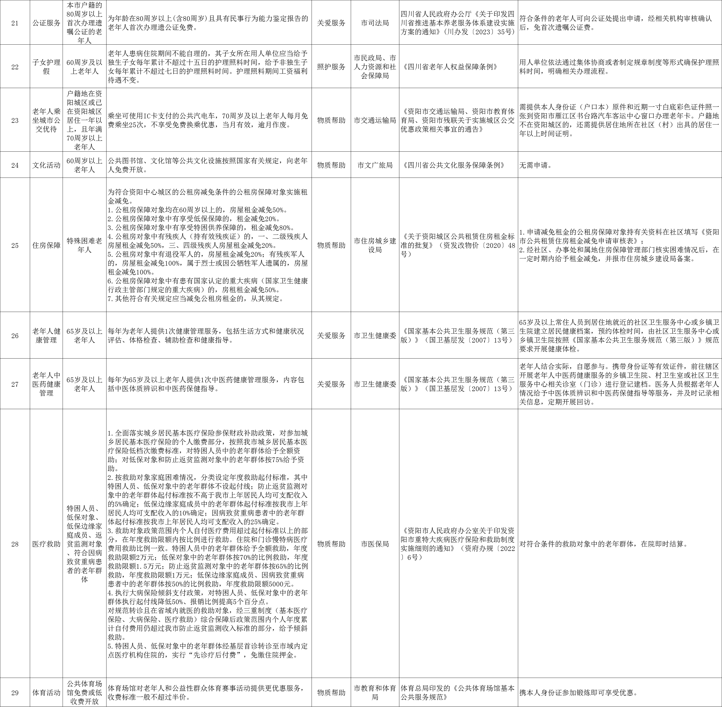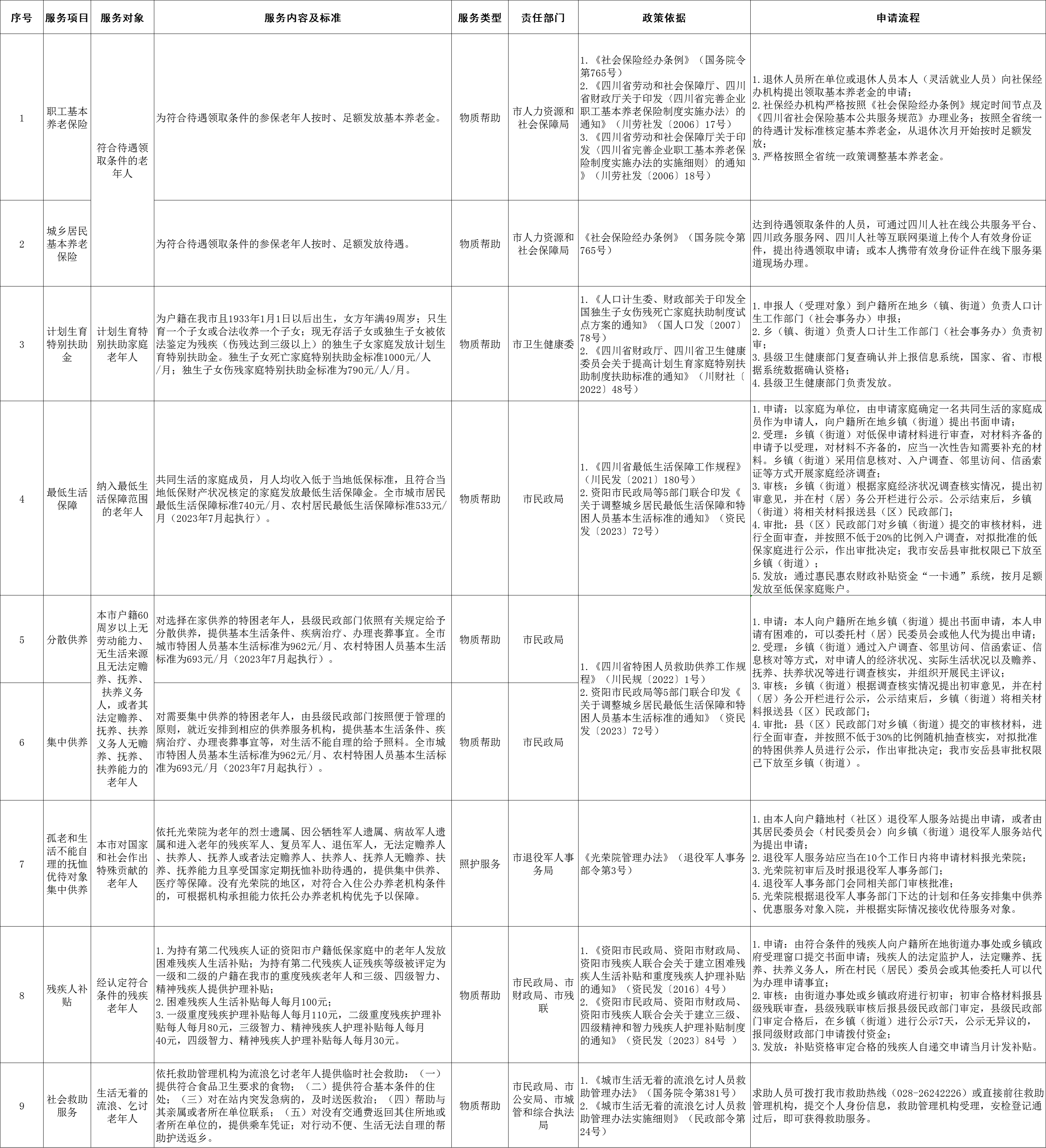 为加快推进资阳市基本养老服务体系高质量发展,4月7日,《资阳市基本养老服务清单》正式印发。《清单》结合资阳实际,优先将经济困难的高龄、失能、残疾、计划生育特殊家庭等老年人纳入重点保障对象,形成基本养老服务清单式政策29项。重点优先保障特殊困难老年人的需要,同时明确了基本养老服务谁、怎么服务、由谁提供服务。