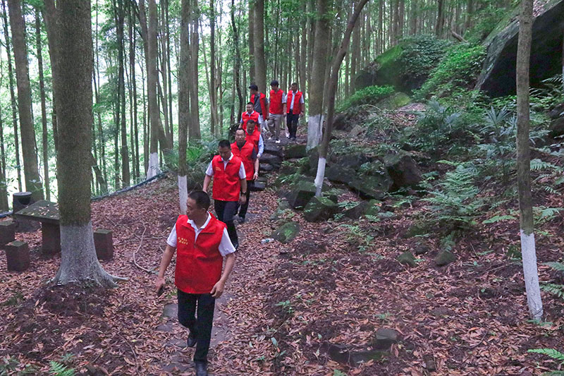 活动最后,“川渝共建·‘大安’同行”的志愿者们,携手来到大足区高坪镇楠木林,开展“文明实践·共护楠木”巡逻活动。志愿者们沿着林间小径前行,仔细巡查着每一片区域,他们的身影在林间穿梭,为这片美丽的森林增添了一道亮丽的风景线。