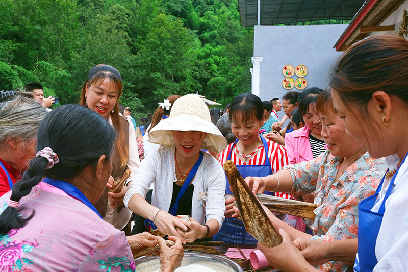 活动的最高潮莫过于包粽子比赛。两地群众相互配合、齐心协力,捋粽叶、填糯米、包粽子……动作一气呵成。转眼间,一个个形状规整、饱满诱人的粽子便呈现在大家眼前,空气中弥漫着粽叶的清香,现场充满了欢声笑语。比赛结束后,大家围坐一堂,品尝着自己亲手包的粽子,共同感受节日的温馨和谐氛围。