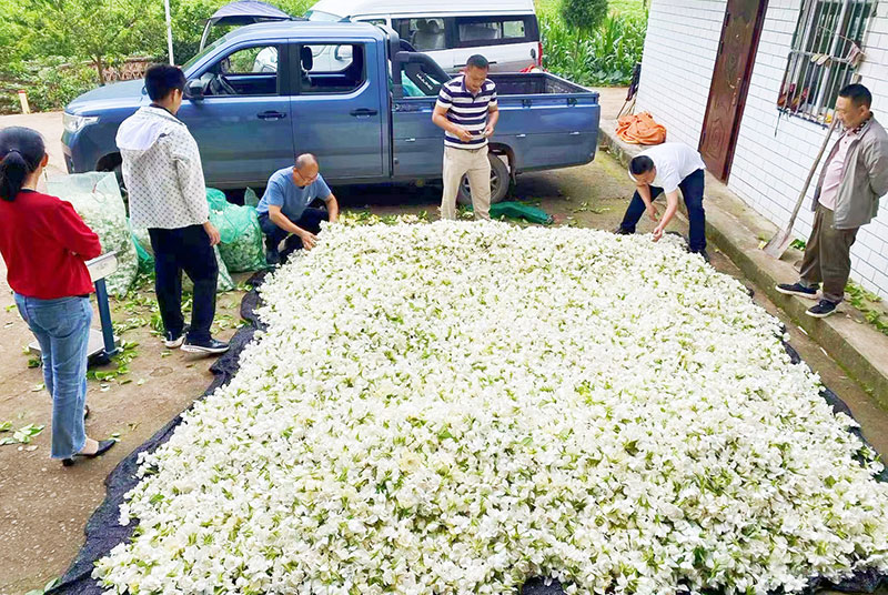 初夏时节,栀子花开,走进卧佛镇关田村栀子花种植园,一朵朵洁白栀子花,迎风绽放、芳香袭人。关田村通过产销对接的模式,聚焦花卉产业发展,通过“政策扶持、项目支持、技术服务”等有效措施,种植25亩栀子花树,栀子花收获后将送往成都、宜宾、乐山等地进行二次加工销售。截至目前,村集体经济收入已达12万元,预计总收入可超过17万元。栀子花不仅推动了关田村村集体经济的发展,带动当地40余名群众就业,还成为农户增收致富的“金钥匙”和助力乡村振兴的“花引擎”。