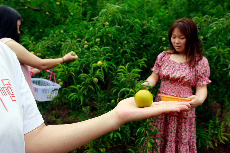 | 游客正在采摘蜂糖李(潘政吉 摄) |