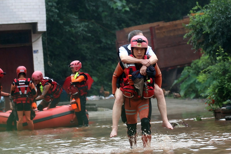 | 消防人员正在天宝乡营救被困群众(安岳县消防救援大队供图) |
