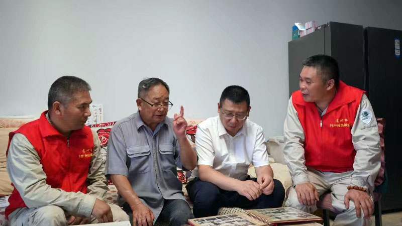 在老人家中,共产党员服务队队员给杨留章老人送上了精心准备的水果、牛奶等慰问品,并和老人促膝交谈。大家围坐一起,边翻看老人的相册,边倾听老人讲述他的从军经历。交谈中,队员们详细询问了老人的日常生活及身体健康情况,并对他为国家所作出的贡献表示钦佩,还叮嘱老人要保重身体。同时,应老人要求,为了方便其缴纳电费,供电中心工作人员在现场为杨留章办理了更名过户,并帮助他在手机上安装了网上国网APP,指导他注册绑定帐号成功,再手把手教会他如何使用手机进行电费缴纳。