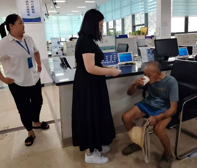 原来,家住安岳县石桥街道的熊爷爷是一名88岁的退伍老兵,为了补办退役军人优待证,只身一人在酷暑下行走1个多小时来到政务服务大厅。工作人员了解情况后,及时为他送去一杯温开水,并热情地做好解释工作,耐心告知该项业务现由石桥街道办事处便民服务中心办理。