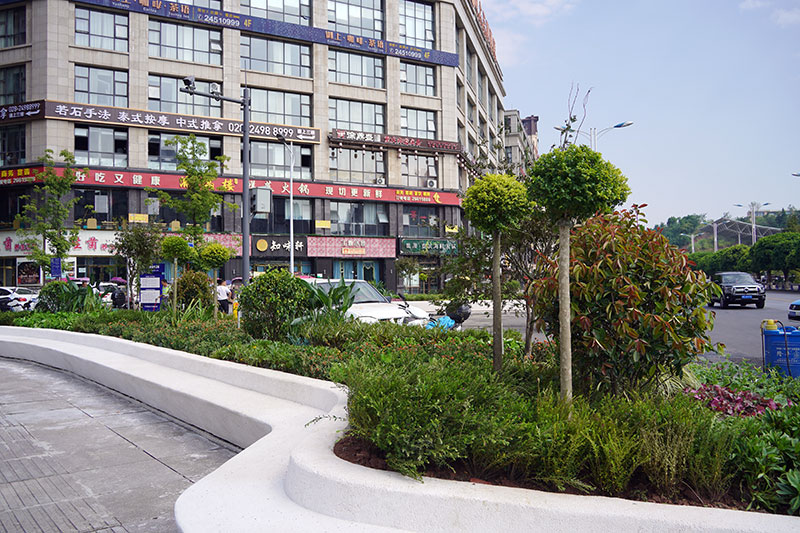 如今,奎安街与九韶路口的试点小街景已完全呈现在大众视野,成为喧嚣都市中的一片宁静绿洲。白色异形花池的凳面不仅可供市民坐憩休息,更以其开放式的设计,连接了人与自然,让市民在忙碌的生活中也能感受到大自然的温馨与美好。