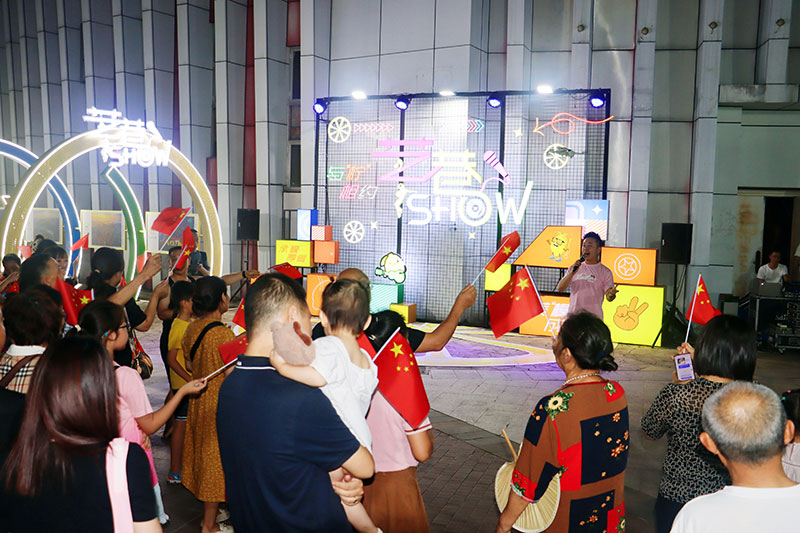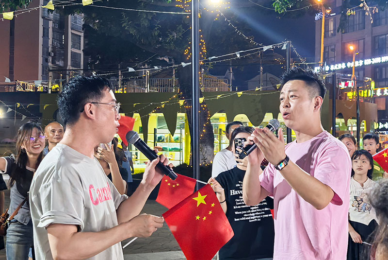 活动现场,人头攒动,热闹非凡。特别令人难忘的是,当晚不仅有专业的歌手表演,还随机邀请了现场观众一起同台演唱。周围的观众们则挥舞着手中的国旗,默契跟唱。
