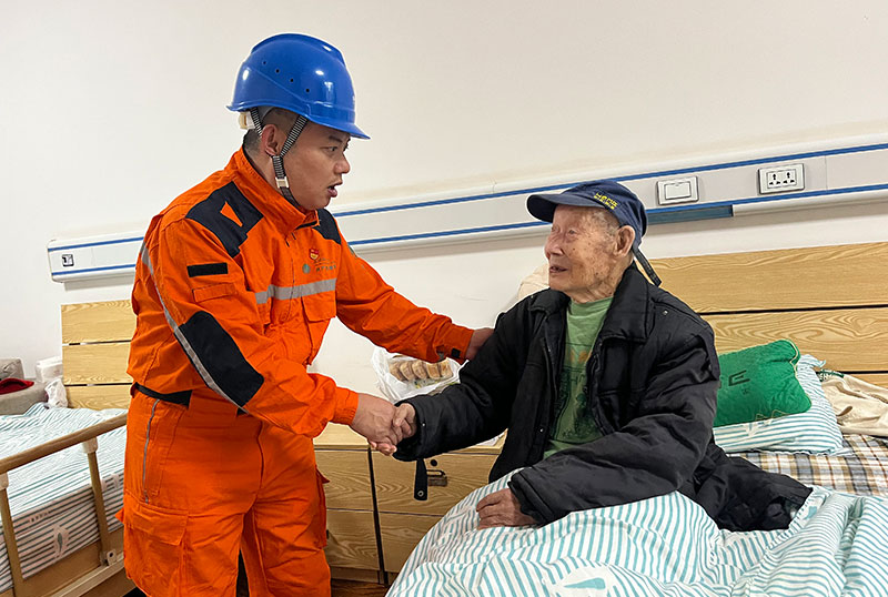 10月11日重阳节,国网四川电力(资阳安岳)连心桥共产党员服务队前往安岳县馨福老年康养中心,看望慰问蒋有廷、蒋伦两位百岁抗战老兵,向他们致以亲切的节日问候和崇高的敬意。