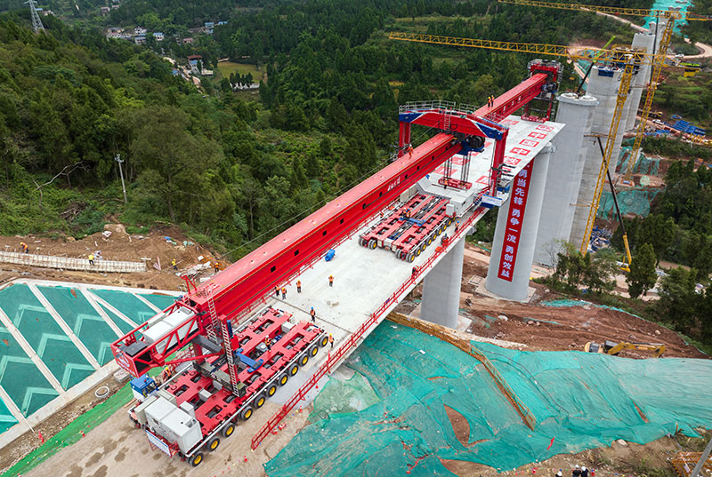 11月17日,随着中铁五局作业人员将长40米重千吨的箱梁稳稳落在麻湾特大桥31-30号桥墩上,标志着成渝中线高铁全线首孔新型40米箱梁成功架设。该型箱梁在成渝中线高铁批量投用,该箱梁具有减少土地占用、提高线路稳定性优点。
