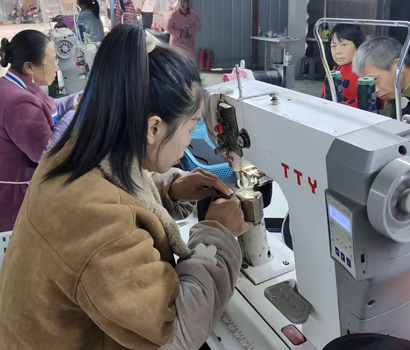 在安岳县驯龙镇,有一位名叫苏春梅的女工,36岁的她,与陈孝单一样,在一针一线之间,编织着独属于自己的生活与未来。“今年9月份,季茜鞋业在驯龙镇的分厂鹏翔鞋面厂正式投产。”苏春梅得知这一消息后,毫不犹豫地前去应聘,并顺利地成为了分厂的一名鞋服工人。