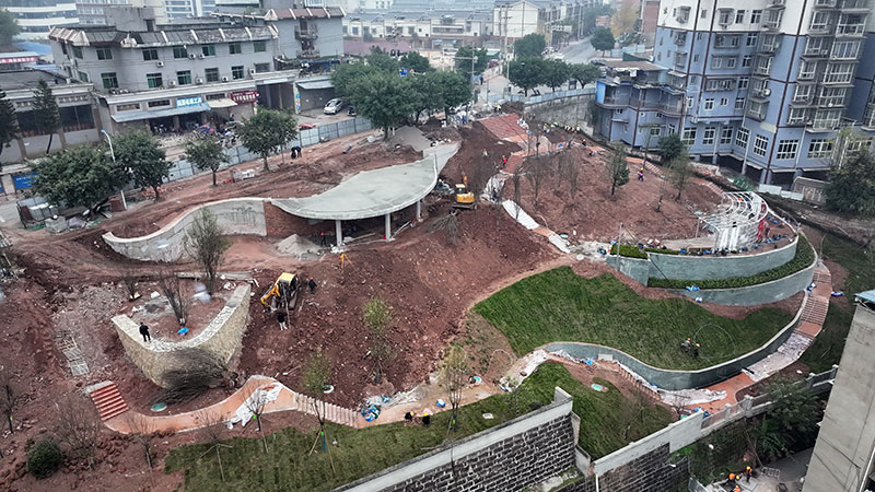 | 茶店子阶梯口袋公园正在建设(易奎西 摄) |