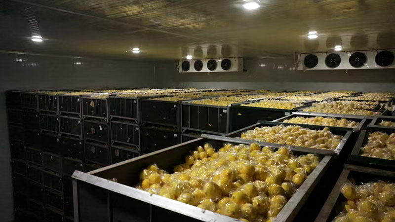 售卖柠檬果,王锐很有心得:“这批柠檬果,开春后身价会上涨,满足大客户供给的同时,我们也会根据实际情况售卖,预计售卖到2025年8月份。”一箱箱柠檬在冷库中高高垒起、直达顶端。依照订单,逐步分包,这些在适宜温度下保存的柠檬果将逐步发往全球各个订单地。
